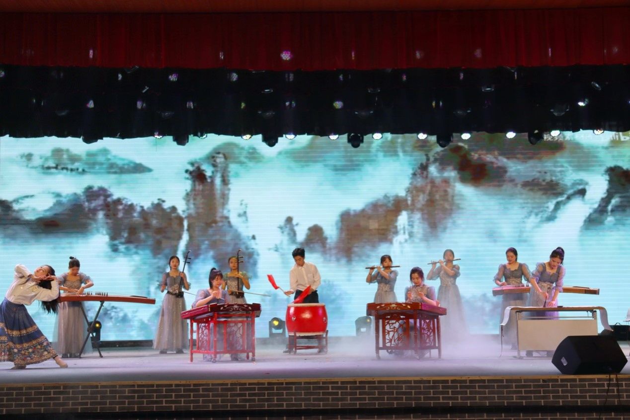 帷幕拉开,粉墨登场。节目《水墨兰亭》将器乐、书法和舞蹈有机结合,弄管调弦,笔走龙蛇,串文化瑰宝,展千年古韵,表达了青年学子继承和弘扬中华民族优秀传统文化的积极态度,彰显了青年大学生良好的精神风貌。